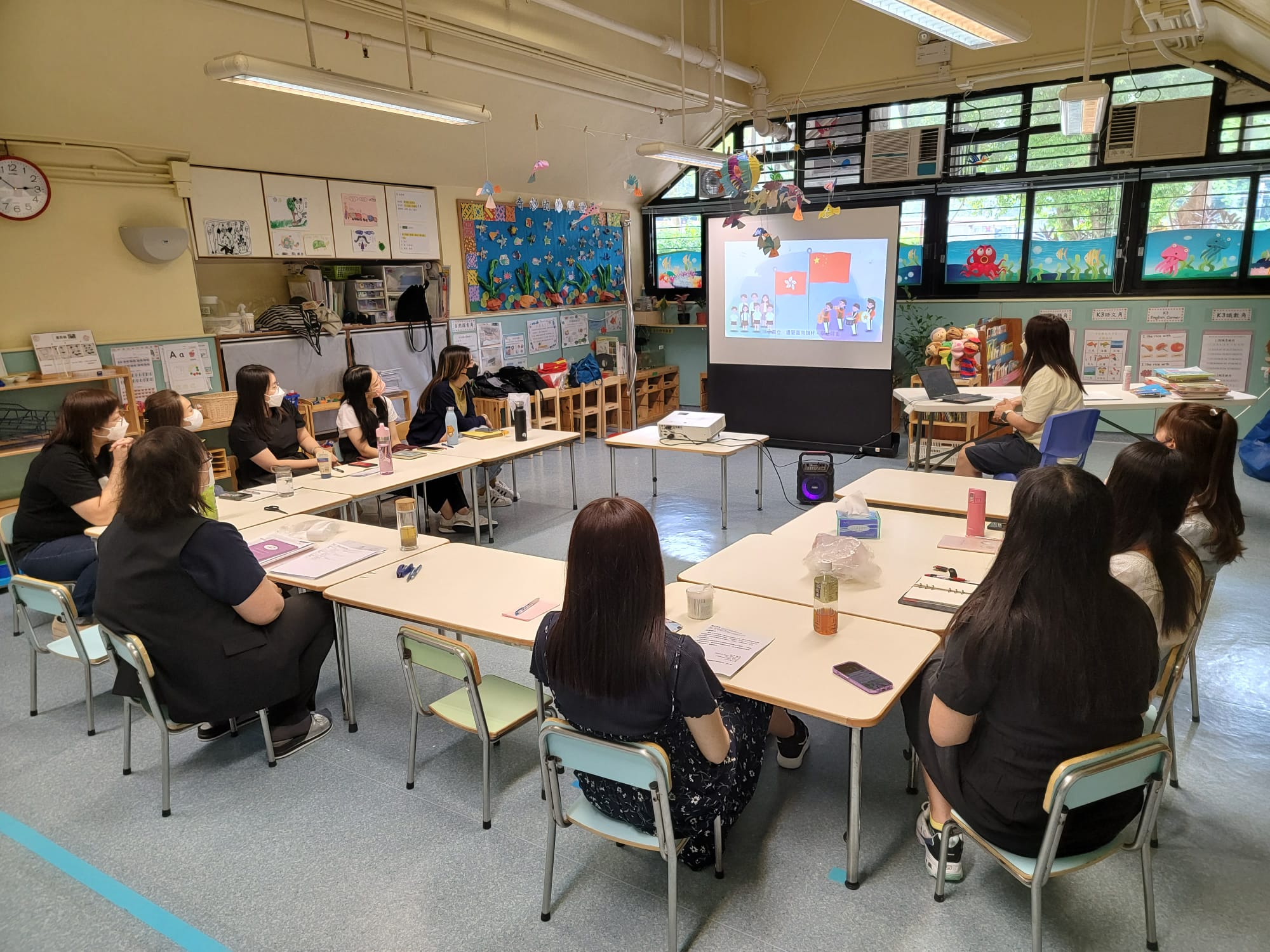 教職員一起討論如何幼稚園學與教層面推廣國家安全教育、認識國家、國旗和國徽以及中國文化,介紹各級課程大綱中國家安全教育和國民教育的目標;教師分組討論各級的活動建議。